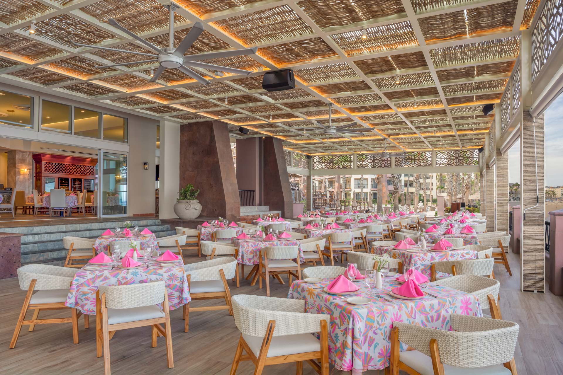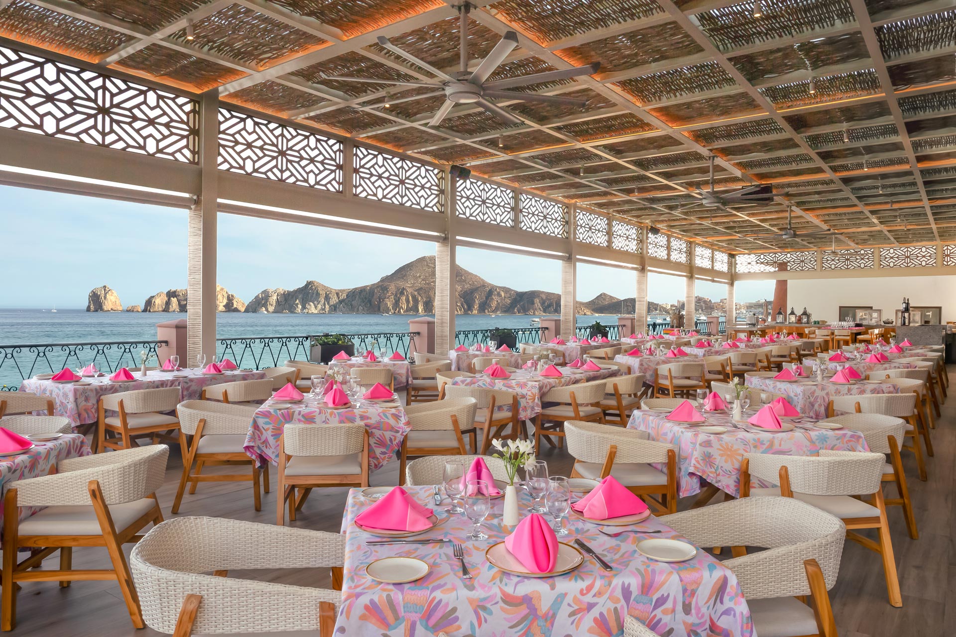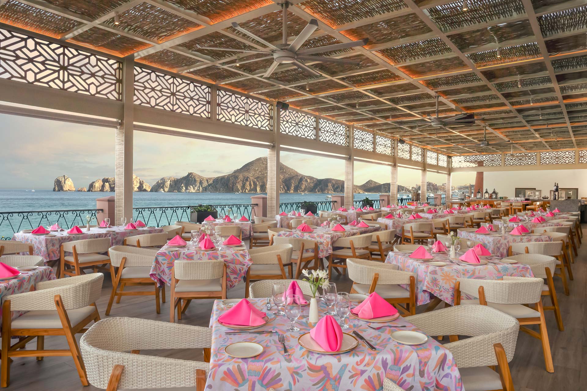 The Los Cabos dining experience at this open-air restaurant is simply sensational. Whether you’re starting off your day with a scrumptious breakfast or ending it with a divine dinner, you won’t be disappointed by the hearty meals, tempting desserts, and the varied wine list designed to accentuate the flavors of each and every dish.